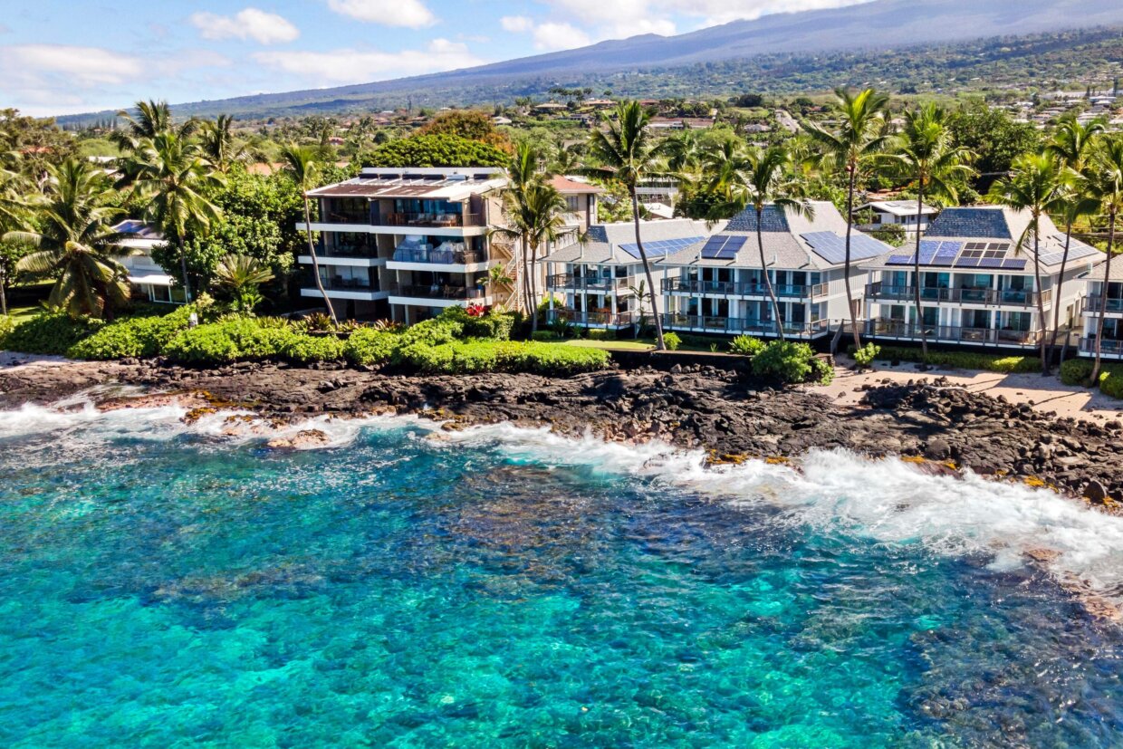 Aerial view of the big island oceanfront beach house